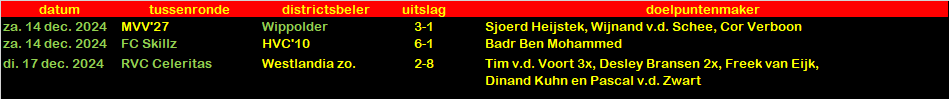 Uitslagen en (v.m.) Westlandse doelpuntenmakers 30 november 2024